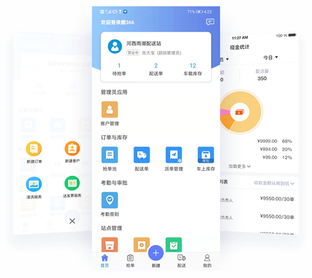 电脑管理端、手机APP配送端、微信客户端,三端互通